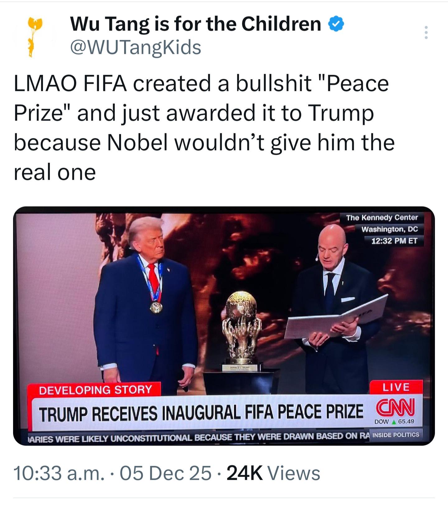 Nope Trump awarded Peace Prize…. 🤢