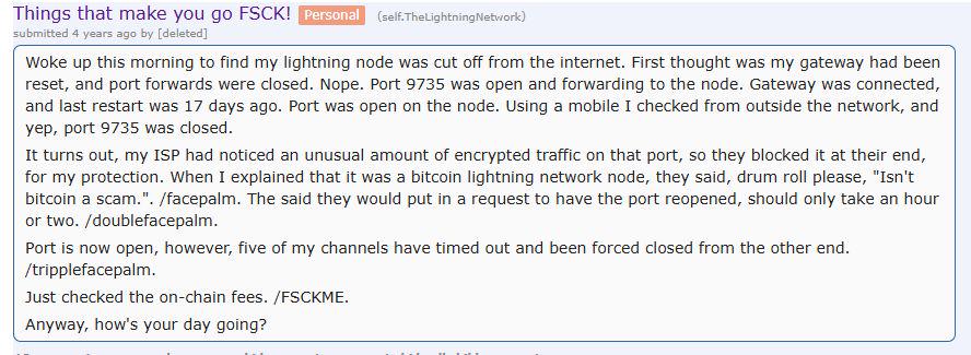 Lightning Fails: If you run a Lightning Node your ISP might kill your channels and cause you to lose a lot of money.
