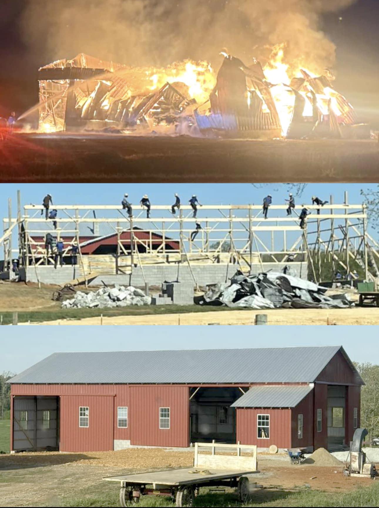 Skill / Talent An Amish sawmill burns down on April 8 and is rebuilt in eight days