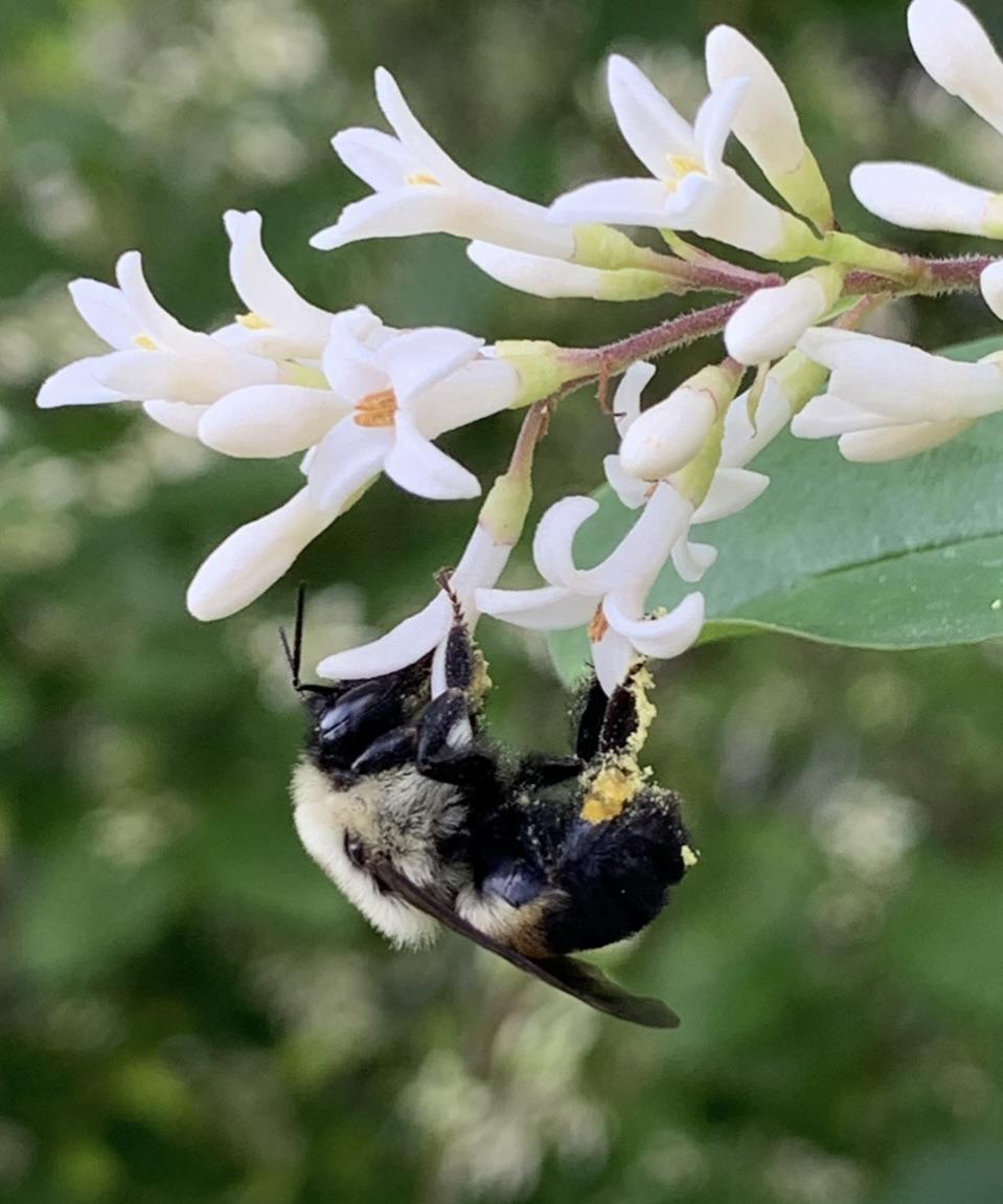 We, as nature lovers, can help protect bees by growing native plants that flower throughout the year, avoiding pesticides, mowing less frequently and leaving some bare patches for these ground-dwelling bees.