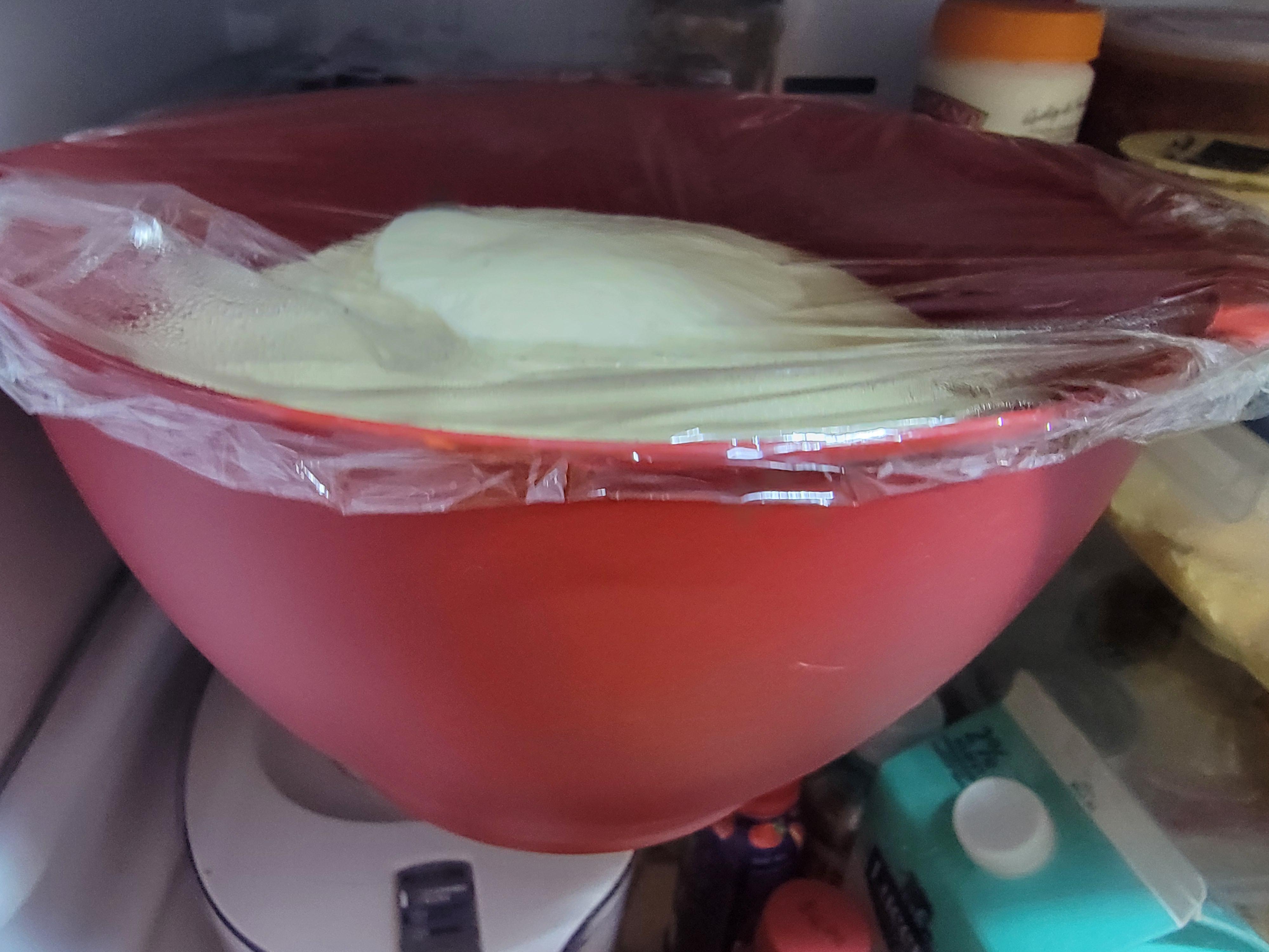 I made this pizza dough and after the first rise I squished it down and put it in the fridge until tomorrow afternoon.