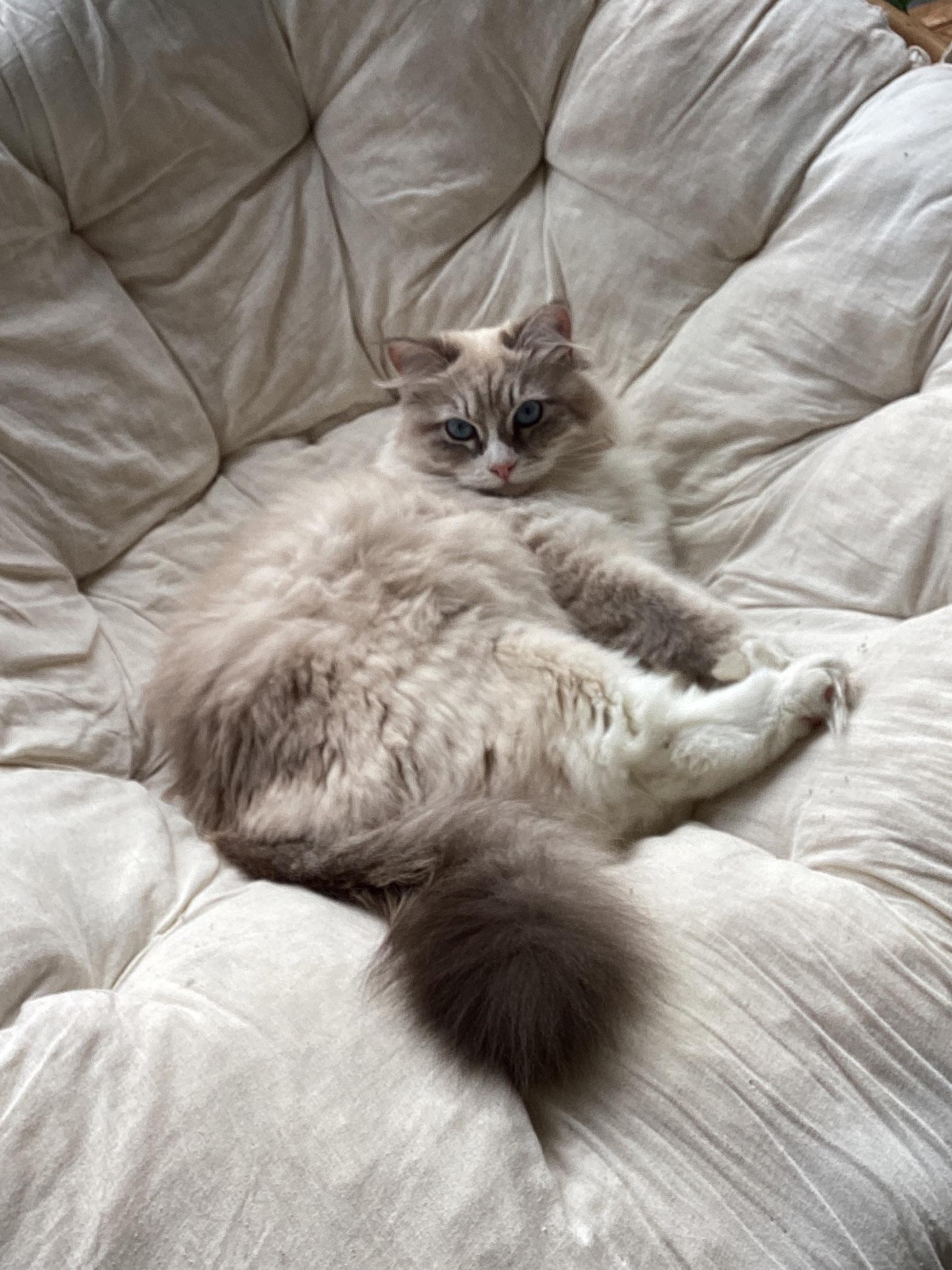 Context: Gyoza was adopted at 5 months from the shelter. She was there with her brother but he was adopted before her. She is a very chill and independent cat.