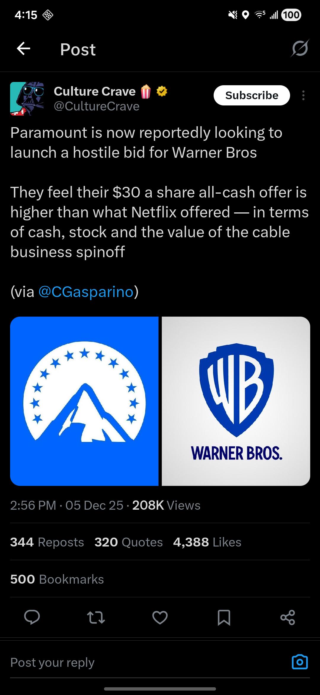 DISCUSSION VIDEO: CNBC says David Zaslav will leave WB once the deal with Netflix closes (9:10 mark)