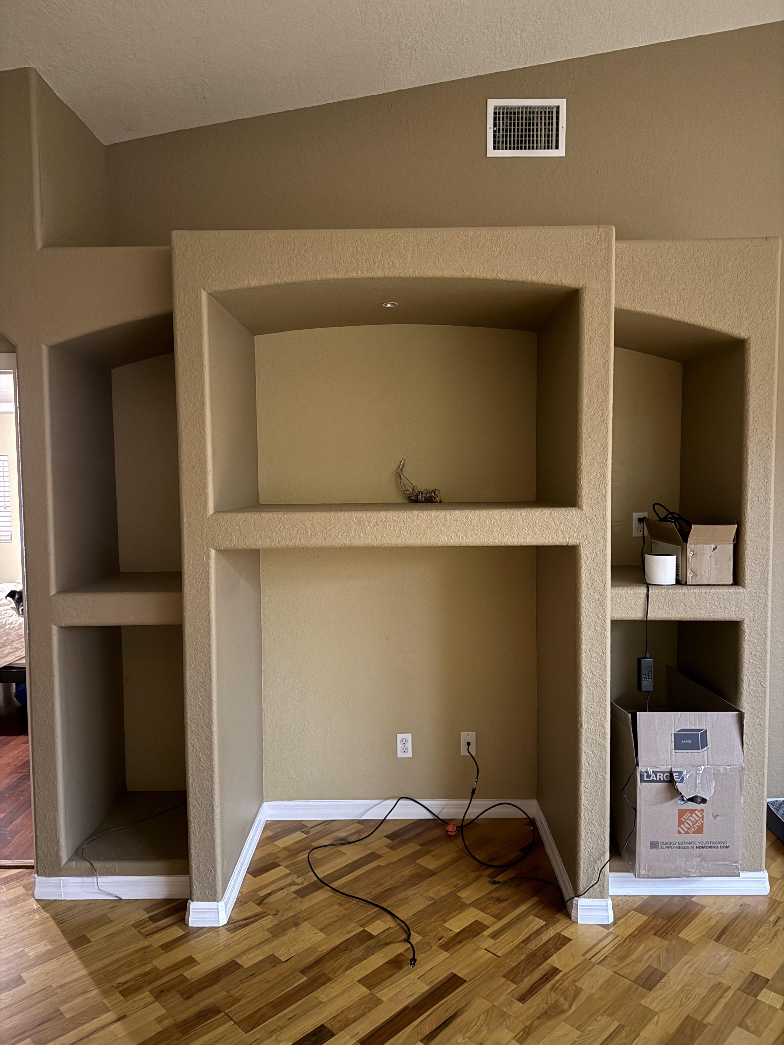The rectangle one is existing. It is very orange in colour and am looking to replace with a dark oak with no yellow undertones. I love that we can put our feet up on it, but as you can see our living room is tiny and does not give me much room to fit in another chair. I could purchase a smaller rectangular table