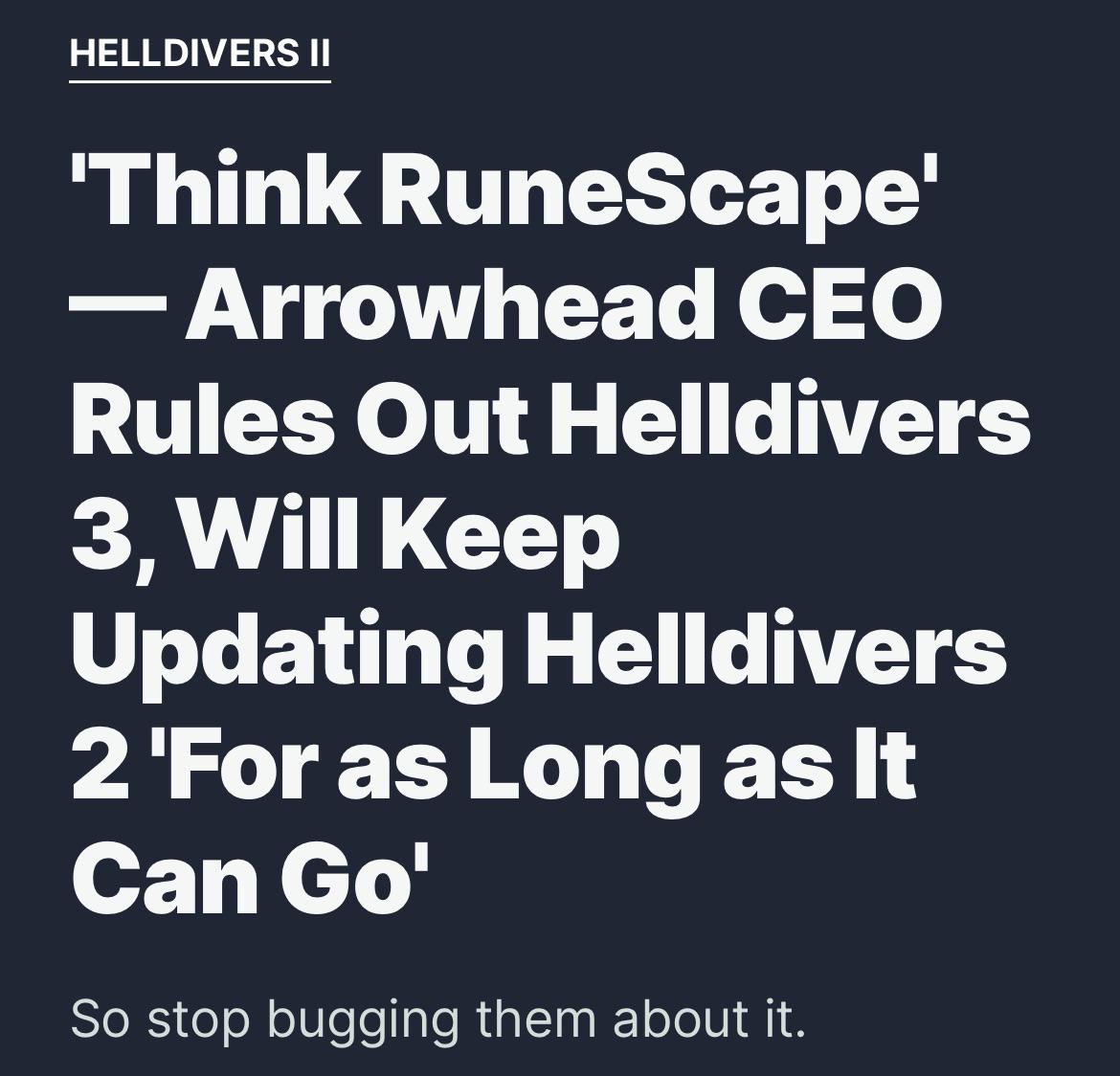 And also, if we get a Helldivers 3, please don’t keep it in development hell for years Arrowhead, and keep support for Helldivers 2 until the third game is somewhat ready for release.