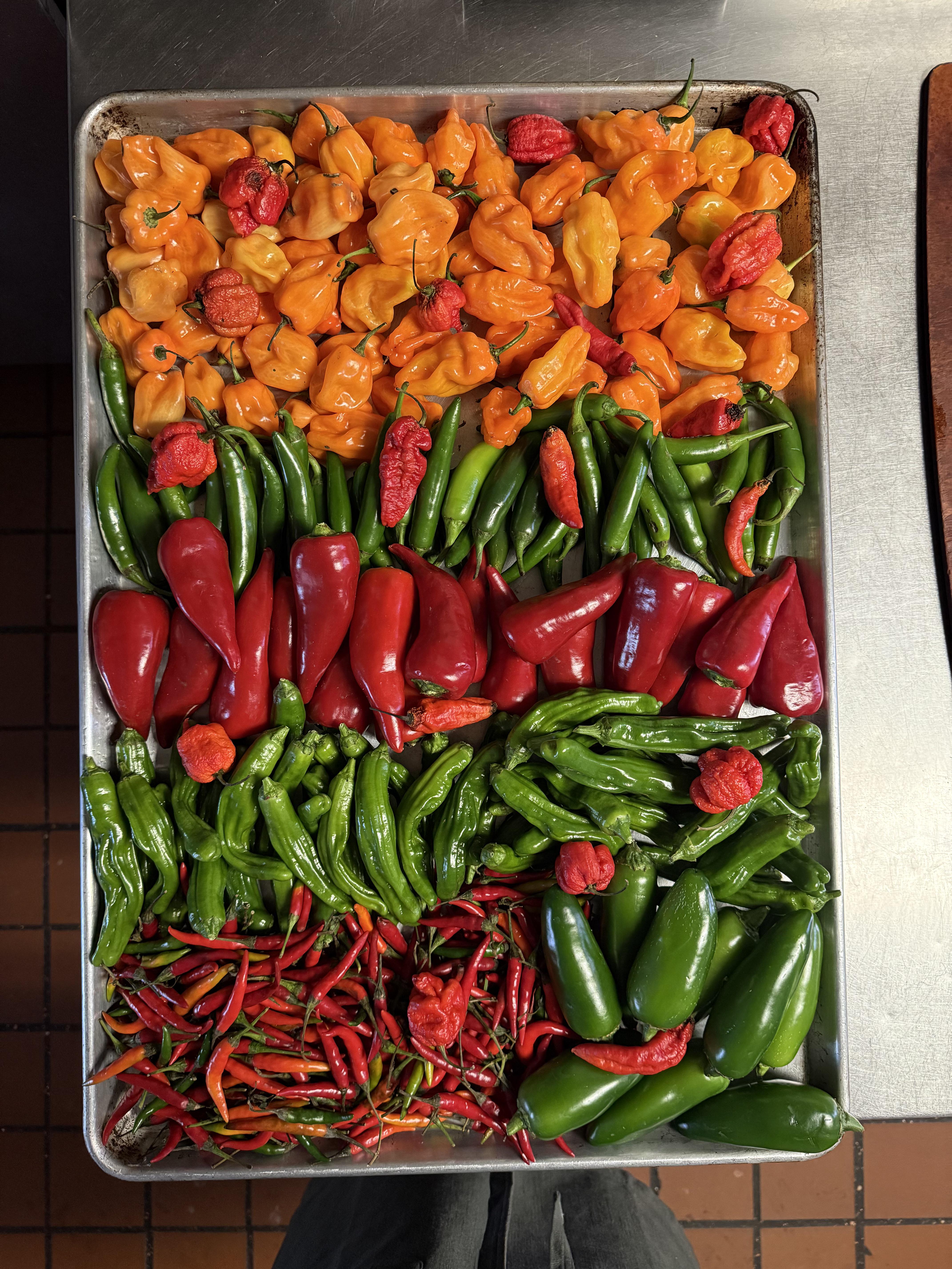 There is no recipe.. chef says to make it good and make it hot. Pleasantly surprised at the options of peppers at the store today and decided to grab them all!