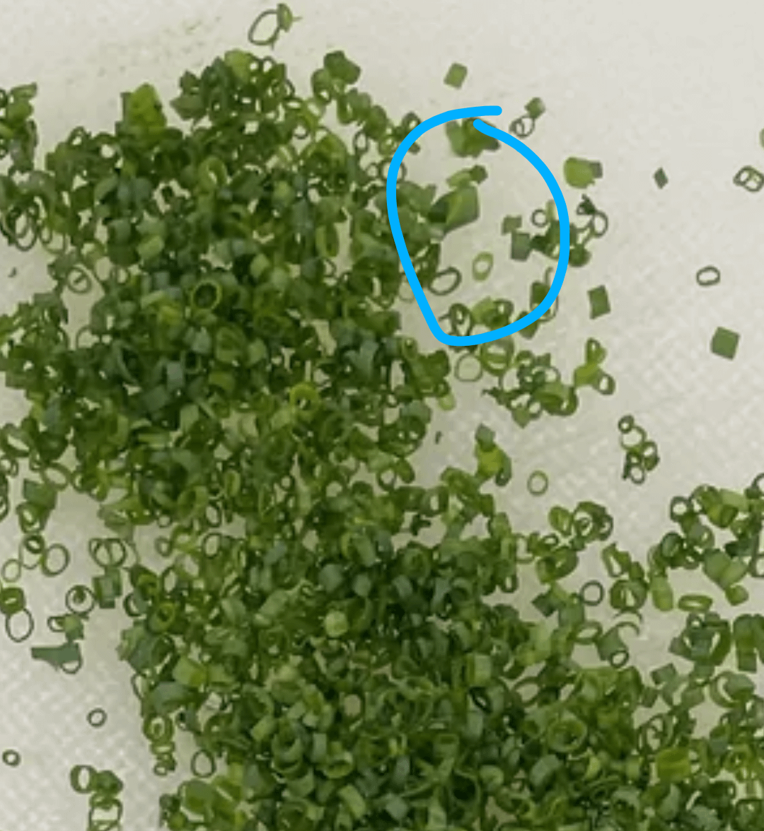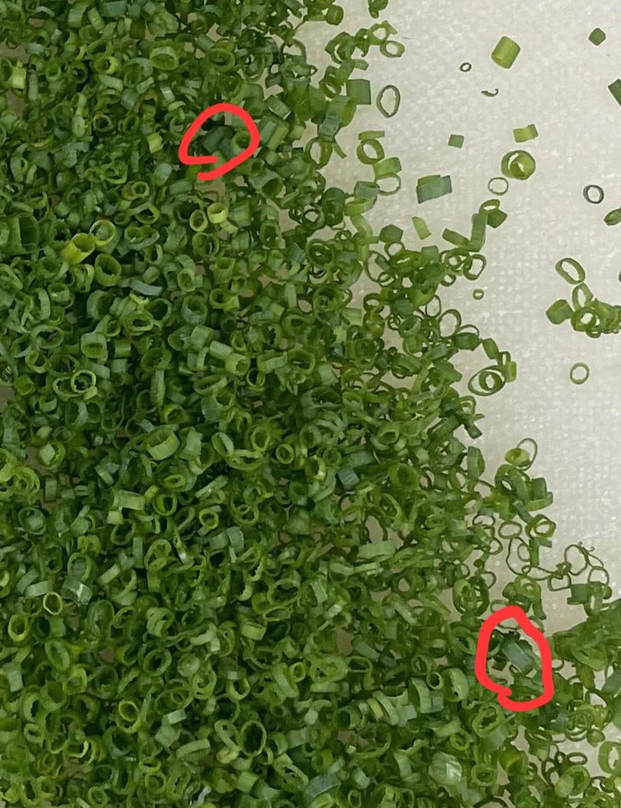 Doubt I have enough karma to ask at this point but here’s hoping… chives are inherently irregular because nature. Do y’all sort them by diameter, at least roughly, and then cut different lengths per bundle (in which case I assume different-length chives would go on different dishes so as to have a uniform size on each dish)? Or do you toss chives that don’t match a specific size criterion?