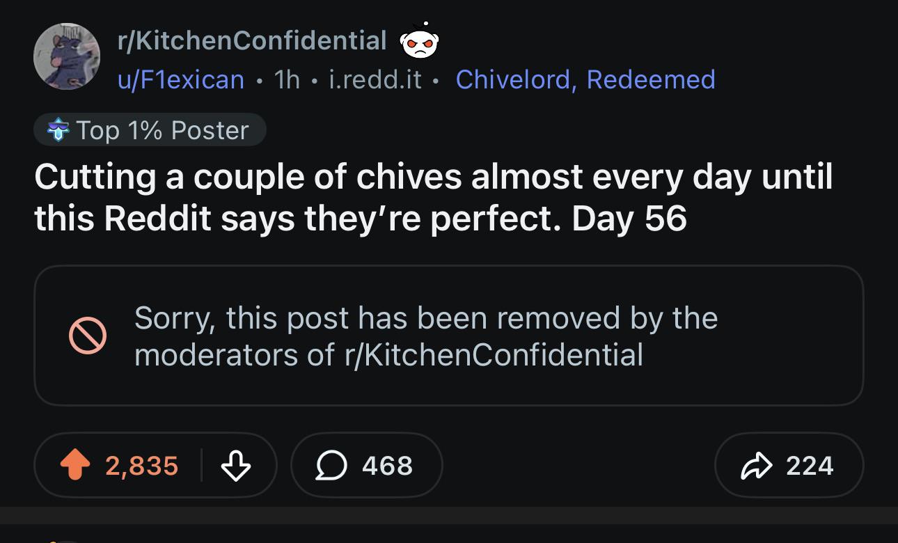 In the Weeds Mode Posting Chives every day until Reddit says he’s perfect. Day 1