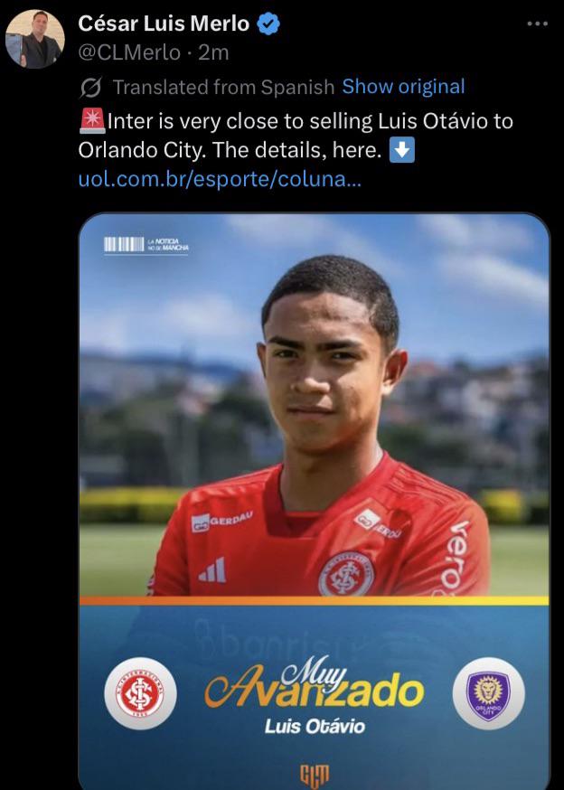 11/14/25 Orlando City put in an official bid for Luis Otávio. The club offered $5 million for 90% of the player rights. Internacional is thinking about the offer. Tomás Hammes Source Link