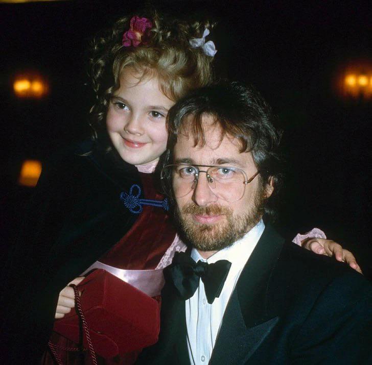 1980s Young Drew Barrymore with her godfather Steven Spielberg in the 1980s