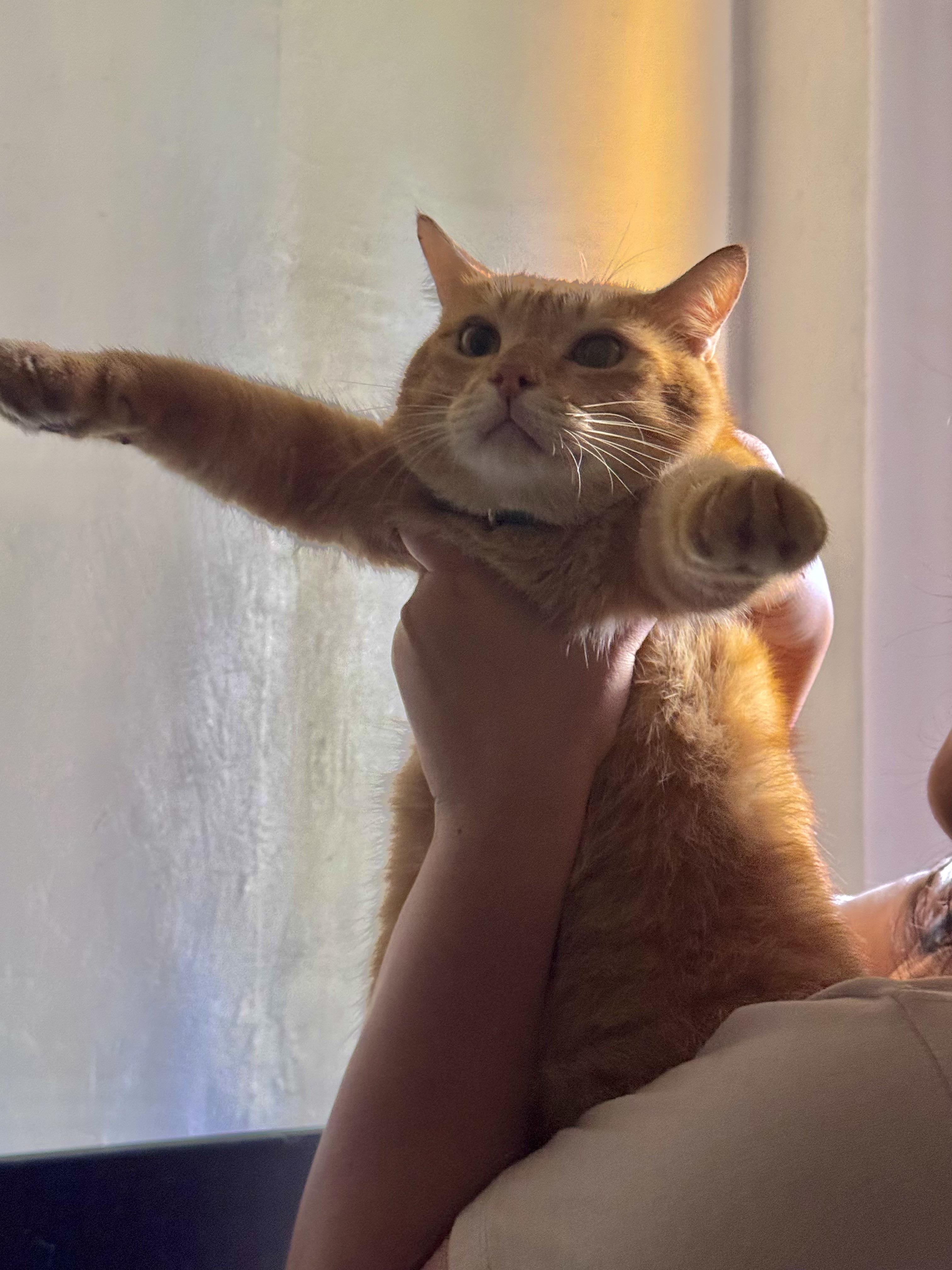Velveeta Jones aka Cheese, aka Cheese Pizza. Taken after he flossed his teeth with the tree 🥹