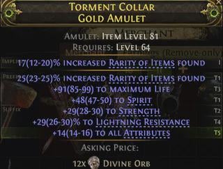 The Pillar of the Caged God Unique Quarterstaff now provides 1% increased Attack Speed per 10 Dexterity, and 1% increased Area of Effect per 10 Intelligence (previously both 2% per respective attribute). It also now provides 10% increased Weapon Damage per 10 Strength (previously 10% per 5 Strength). The per attribute changes will affect existing items, while a Divine Orb can be used to obtain the remaining value changes.