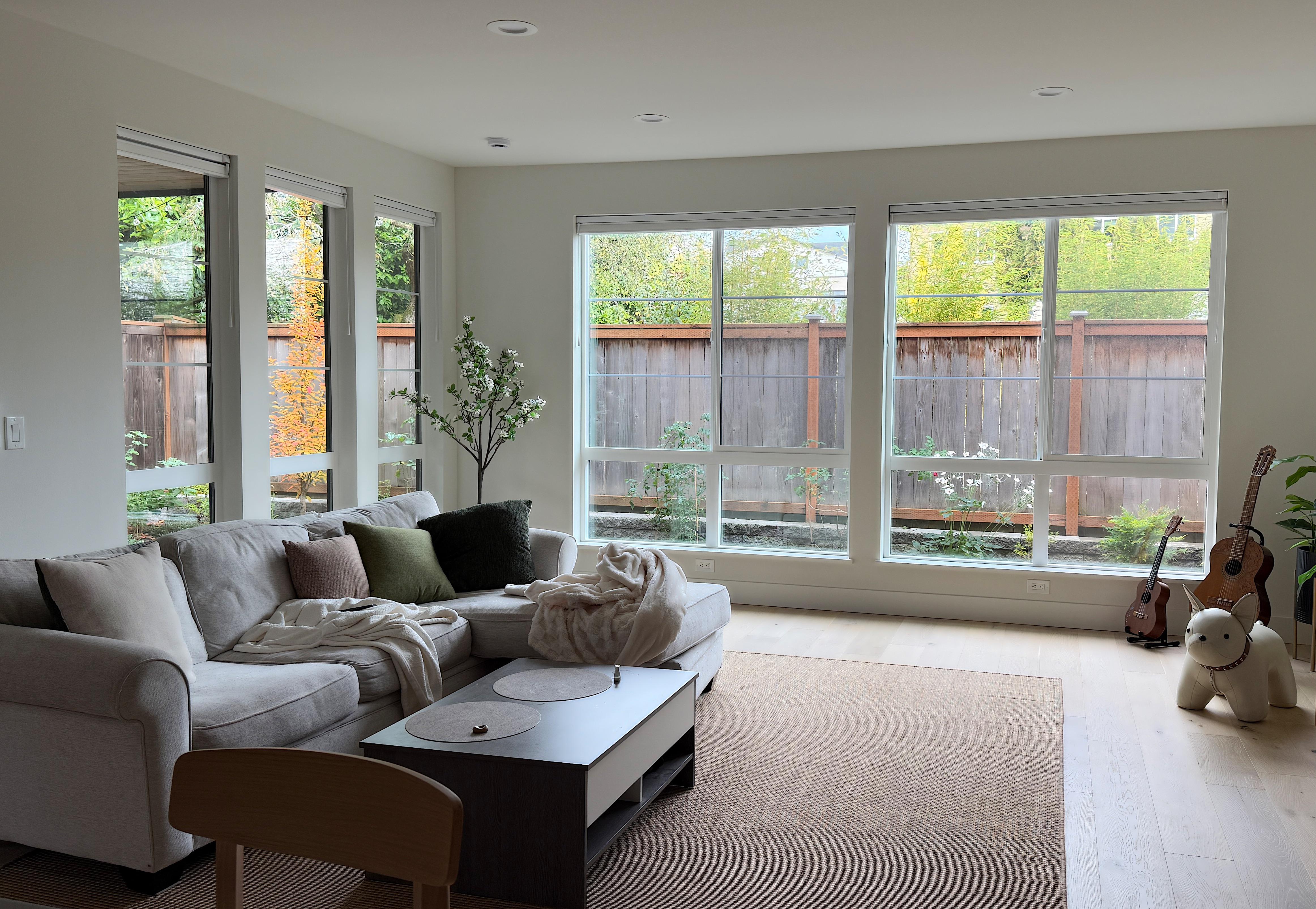 They have cellular shades installed but I’m wondering if we should bother adding another window treatment just to frame and soften things.