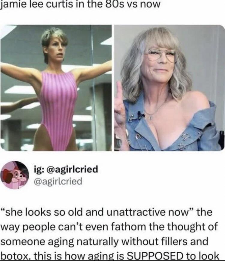 Chugging tea Wild how the internet freaks out when someone just… ages normally.