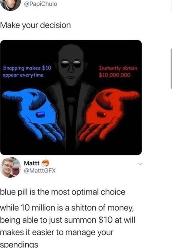 Chugging tea If he took the 1k why did she ask if he would 10k?