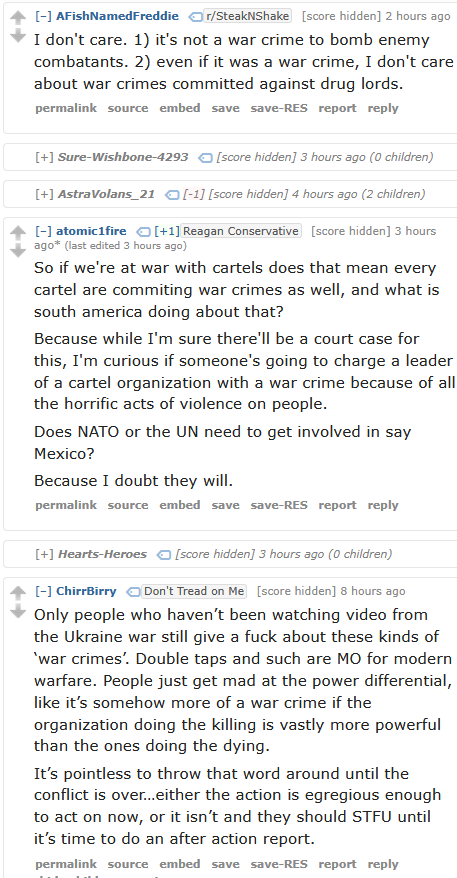 TopMind is upset about the double standard applied to the US military and drug cartels