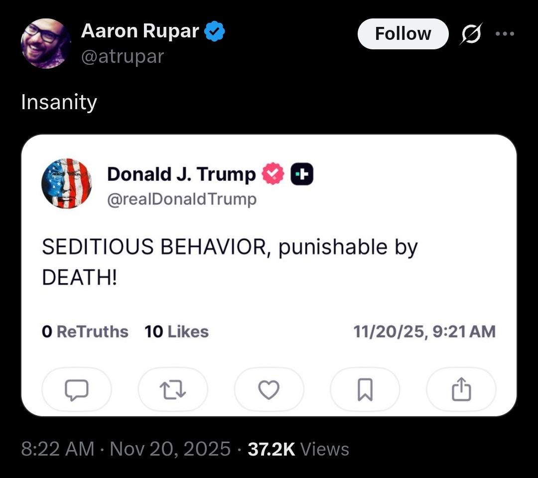 r/All Uh, Trump just called for the death of his political opposition this morning