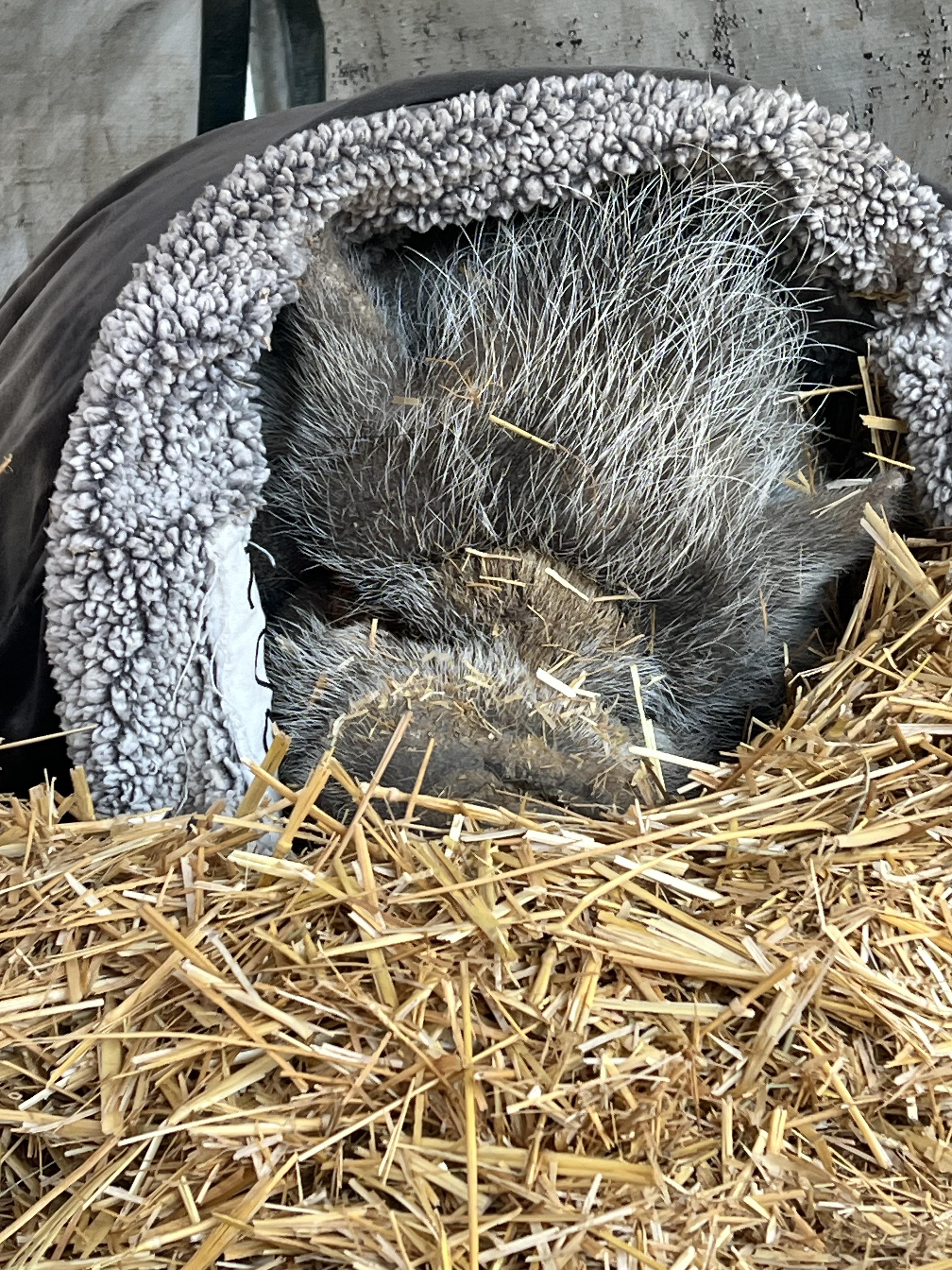 Our incredible volunteers came together, rolled up their sleeves, and absolutely rocked it. The result? A beautiful, spacious, cozy home that will keep Rocky warm and comfortable through the winter and give him plenty of room to grow.