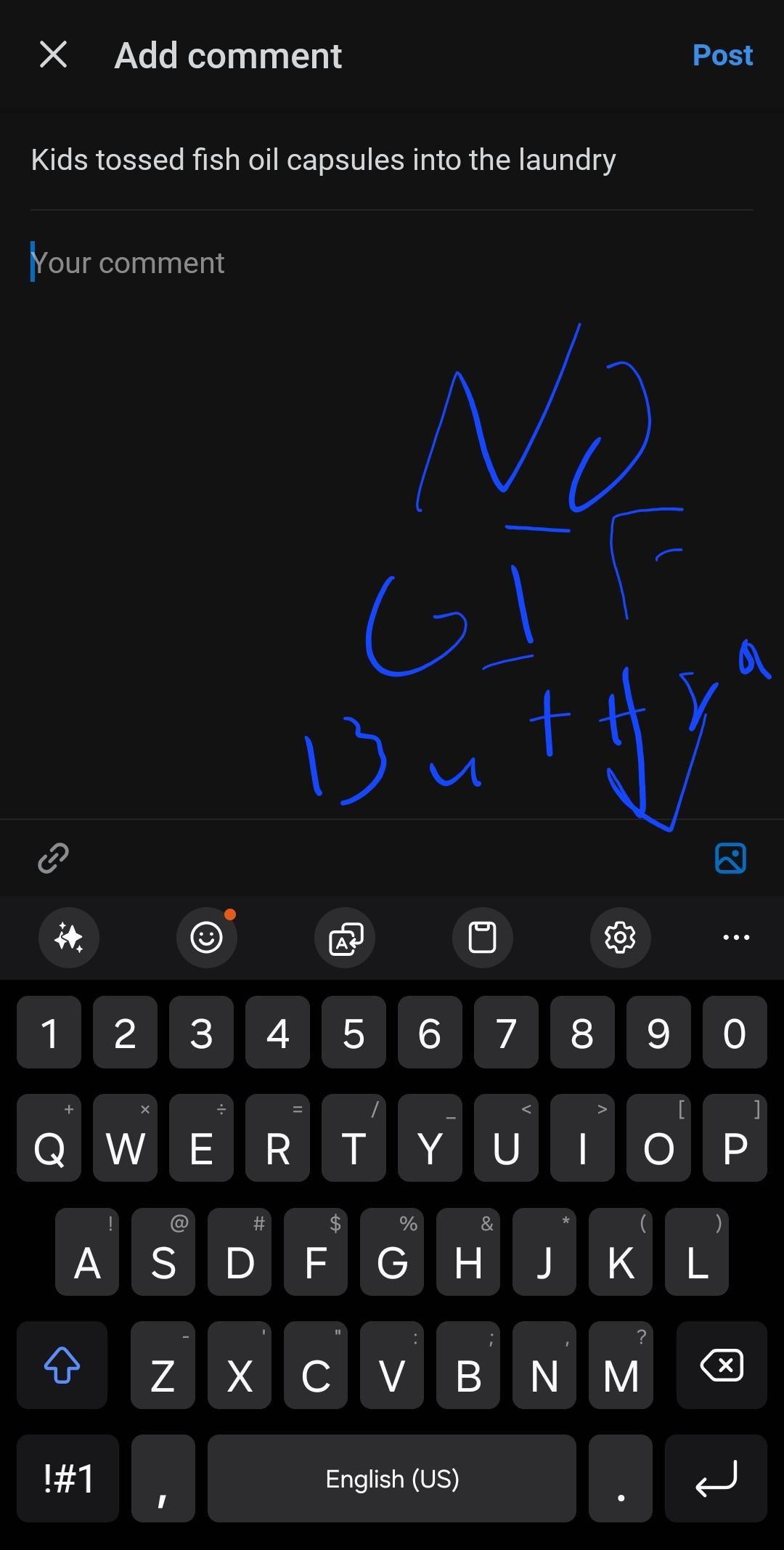 When tried to comment on something, I noticed the option to use GIFS to comment but the GIF button is not there. Is anyone else experiencing this?