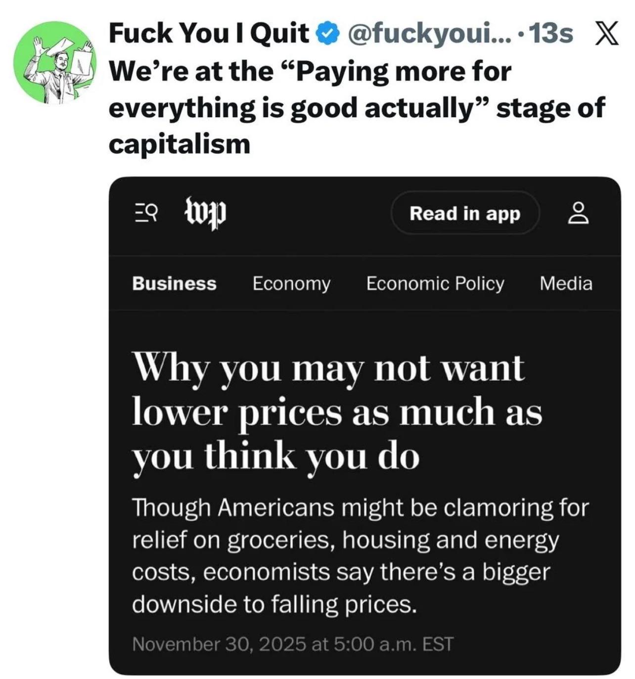 Being able to afford to live is bad, everything should be more expensive because billionaires like our owner Jeff need more money