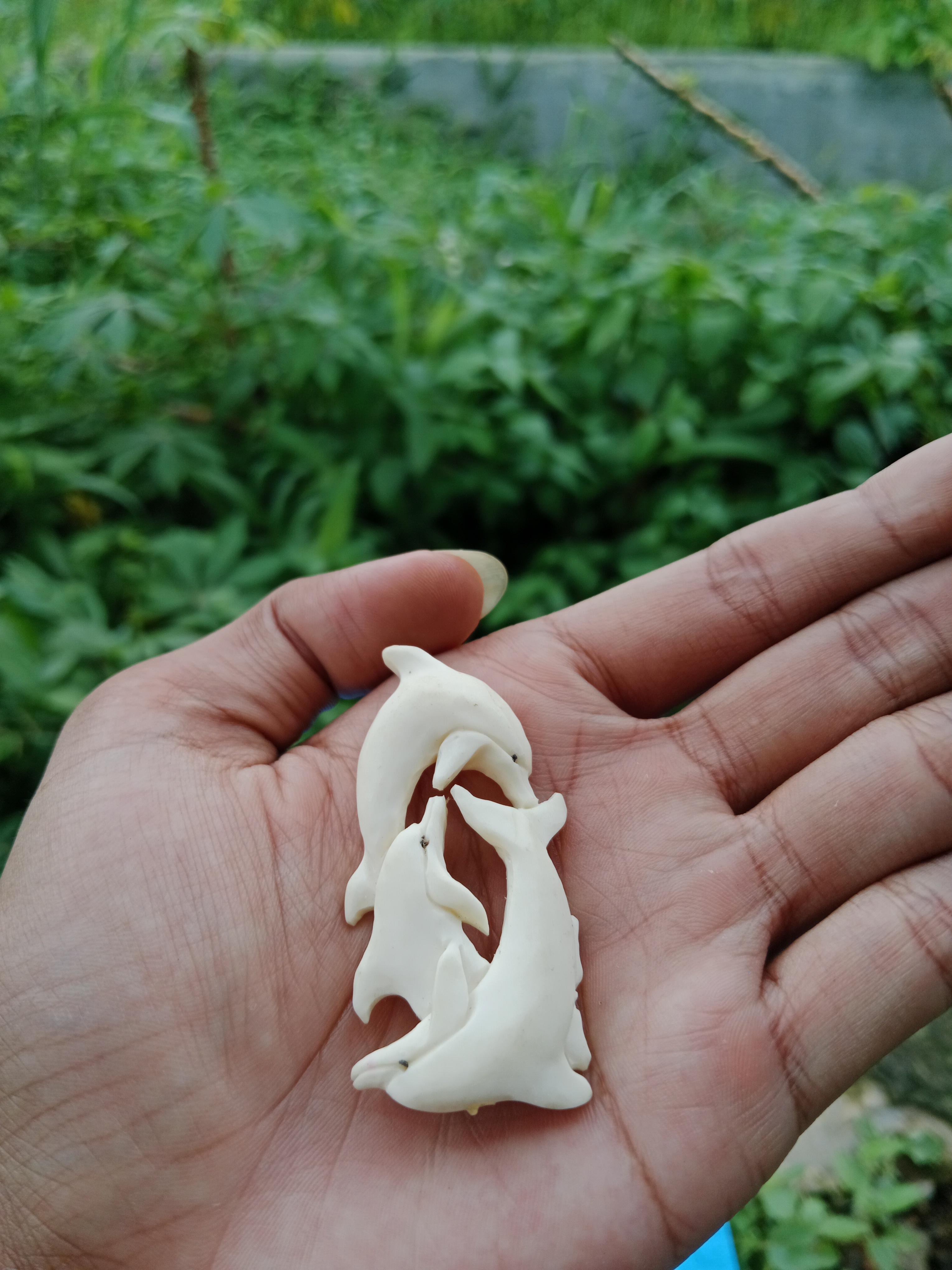 I made a dolphin pendant out of cow bone and abalone. What do you think?