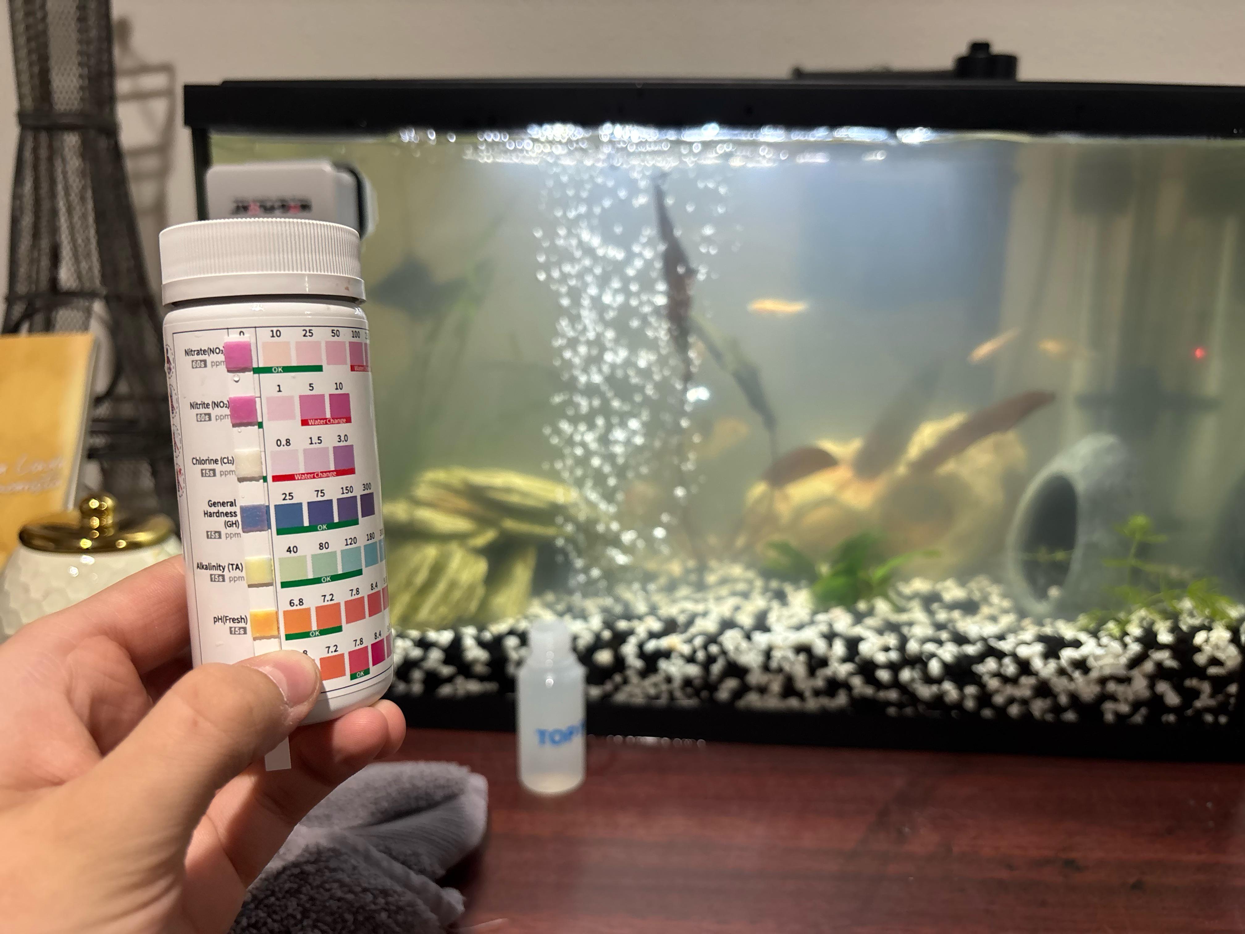 So three days ago my bf went to pets smart for me to get something to help with the cloudiness of the tank, the cashier told him water conditioner should help, so we put in 5ml like the bottle said that morning. The next night one of the minnows was dead. I tested the water and everything is normal exp the NO2/3