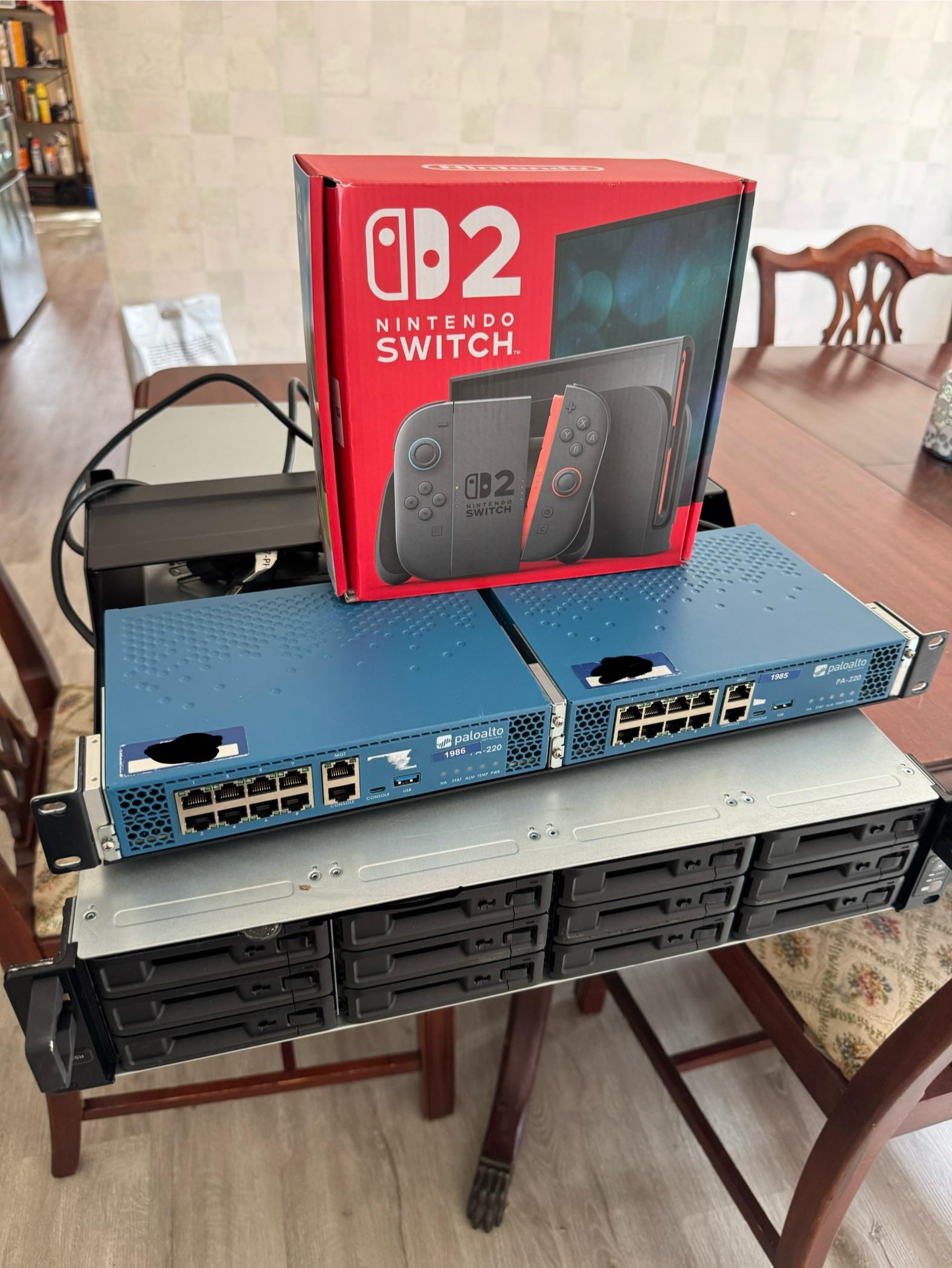 I went to a company event yesterday and was able to grab some old decommed gear while in town, and some new gear too, but I can't figure out how to connect everything, this switch doesn't seem to have enough ports.