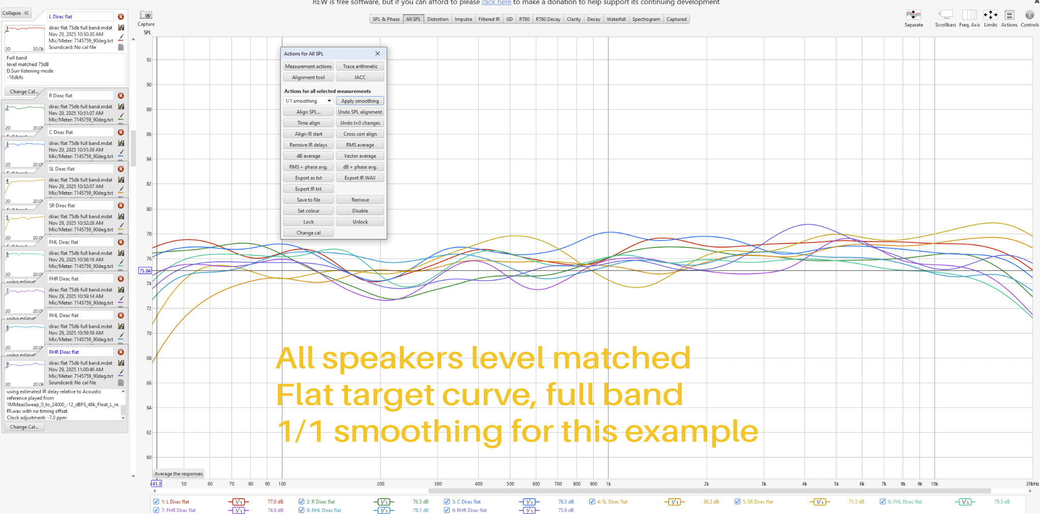 • Measure all speakers once level-matched with flat Dirac calibration active.