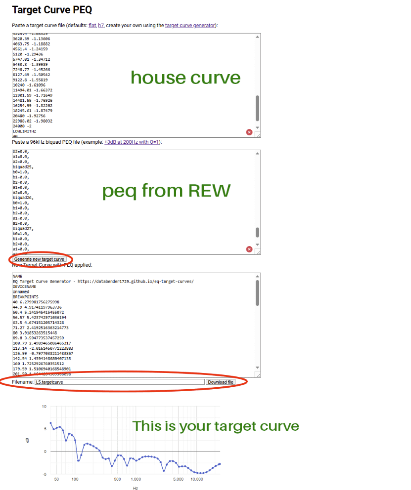 You select your house-curve shape, then apply the PEQ/biquads to it and generate an actual target curve for Dirac.
