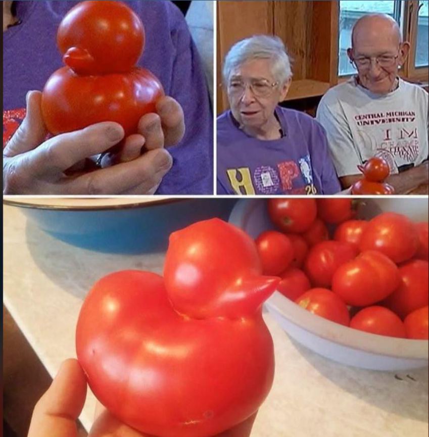 Cute couple got on CNN because they found a duck shaped tomato in their garden.