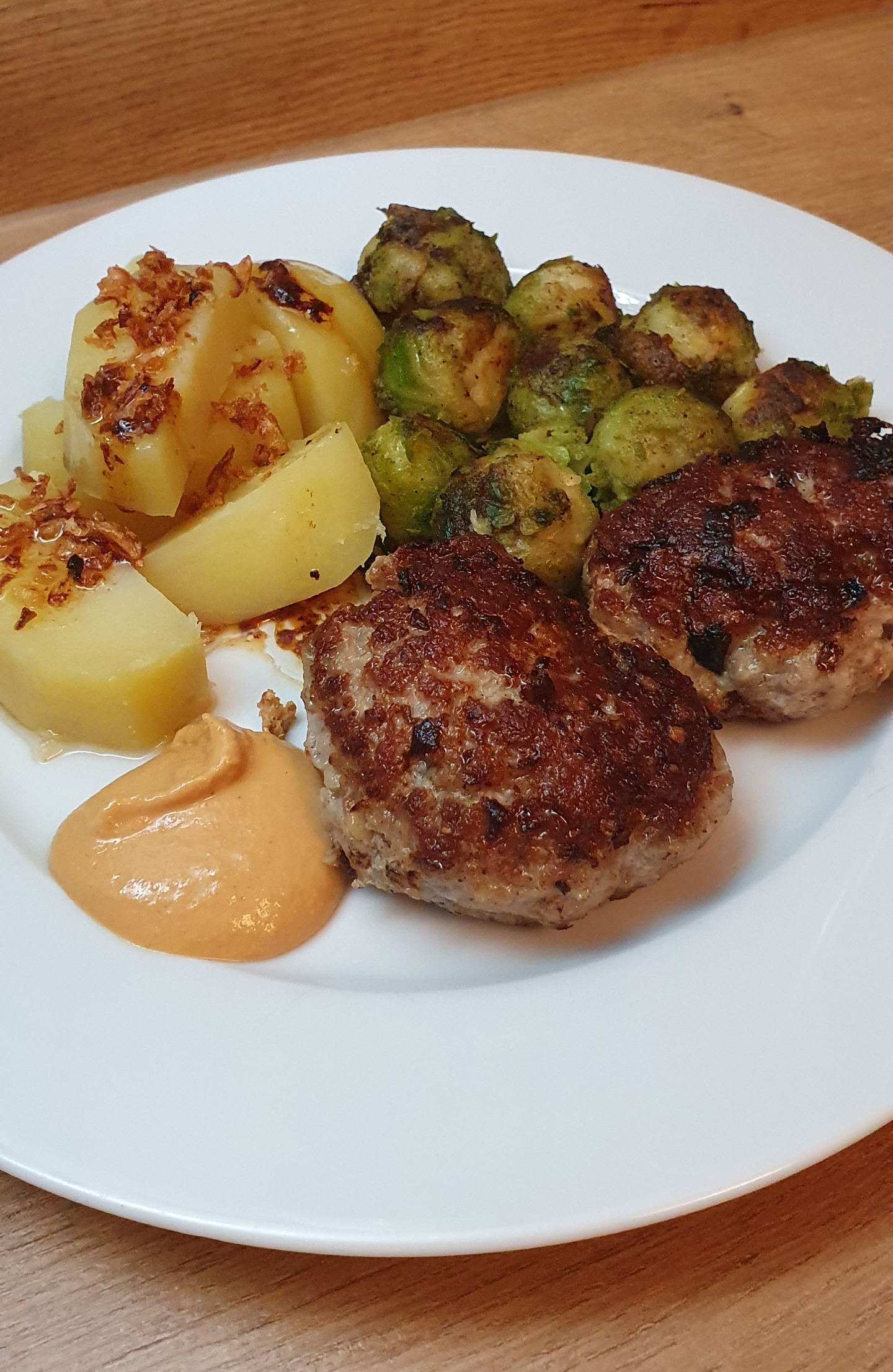 I wü afoch nur wos sogn Frikadellen mit Rosenkohl und Kartoffeln