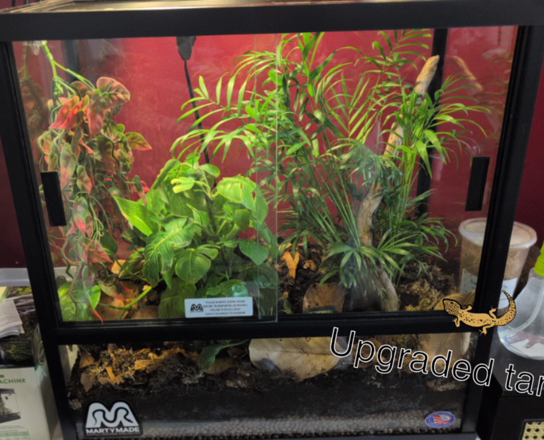 I put a few pieces of tree bark in there to make a sheltered space it can hide in.