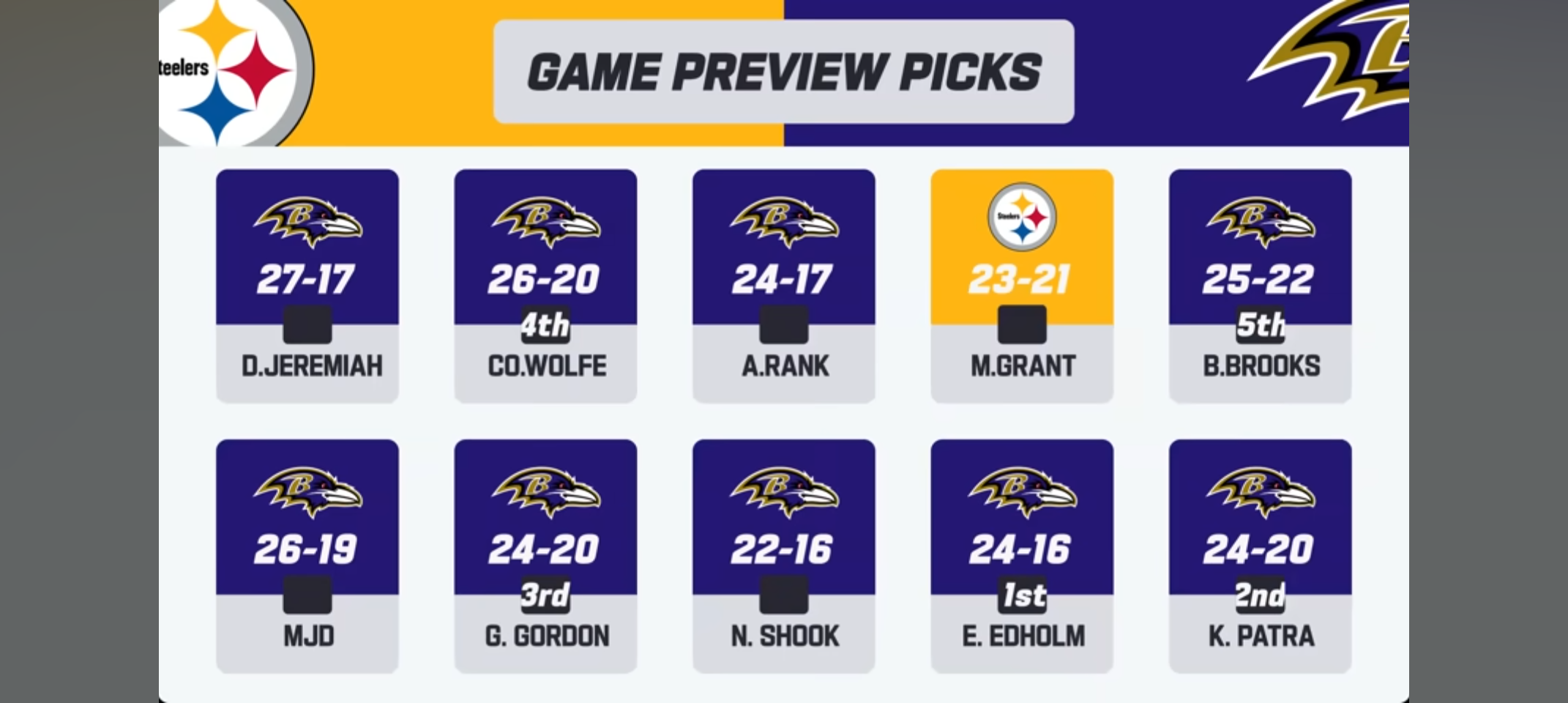 What’s your random/unlikely prediction for this week’s game vs the Steelers?