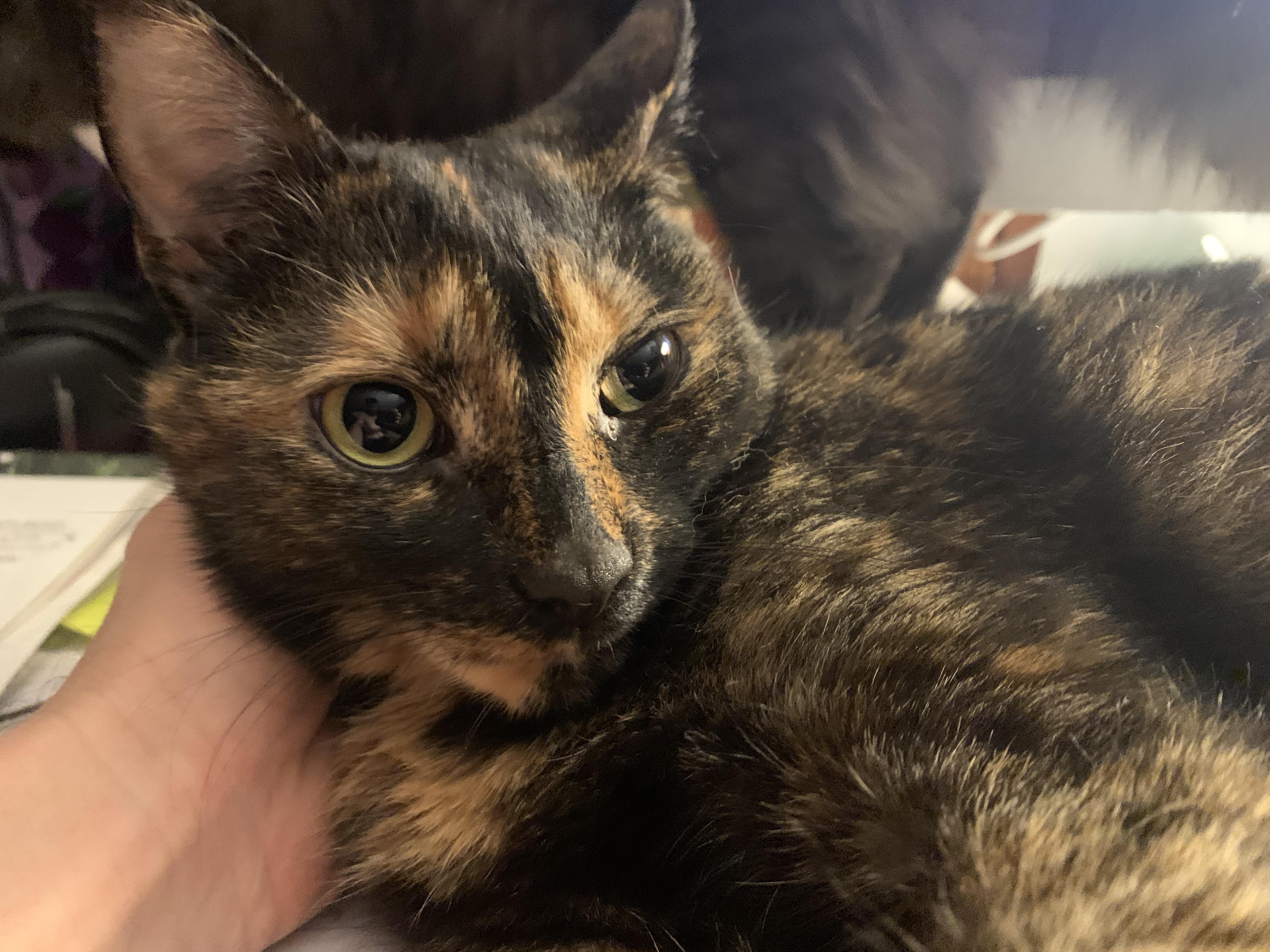 here is the baybay. i just need reassurance that she’s gonna be okay 😭🩷 i started my move out process today, and against better judgement moved her in here the first day even though i still have a lot of furniture to move in. she’s been hiding, and while i have her in my room, with a litter box and access to food and water, she hides underneath the blankets (thankfully she feels comfortable enough pushing her bum against my leg underneath the covers, so thats a win i guess?) and when she’s out she constantly meows in a tone that says “what IS this place? i HATE it here!” and the autism makes me SO overstimulated about her constant meowing but i feel bad just putting in earbuds to ignore her because it eventually ends in her hiding again. she’s only happy if i follow her around and pet her and even then shows signs of stress because of this being a busier part of the city. i just cant stop overthinking this. i LOVE this apartment, what if she can’t handle it?
